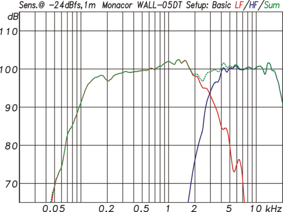 ABB. 05: Frequenzgang der WALL-05DT mit dem Setup Basic. Die Trennung des 2-Wege Systems erfolgt bei 3 kHz. (Bild: Anselm Goertz)