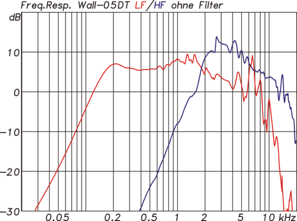 ABB. 04: Frequenzgang des Hoch- und Tieftöner in der WALL-05DT ohne Filter (Bild: Anselm Goertz)