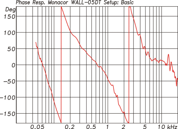 ABB. 07: Phasengang der WALL-05DT mit dem Setup Basic. Die XOver Funktion wurde mit Linkwitz-Riley-Filter 4.Ordnung realisiert. Am unteren Ende des Übertragungsbereiches kommt noch ein weiteres Hochpassfilter 4.Ordnung zum Schutz des Lautsprechers vor tieffrequenten Signalanteilen zum Einsatz. (Bild: Anselm Goertz)